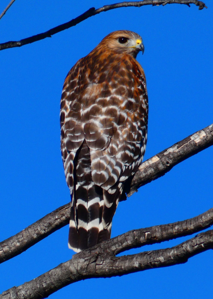 Red Shoulder Hawk in winter. Temecula Wine Country. Shot with a Panasonic Lumix FZ80.